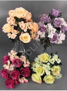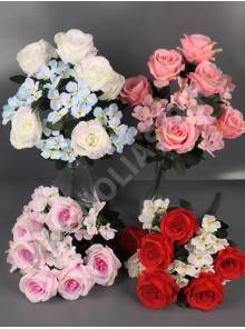 4163 / Букет роз с гортензиями 11гр 52см (бел крас б-роз роз слив сир лайм перс)
