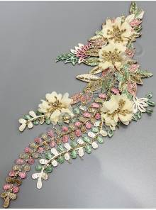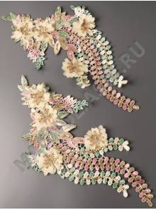 Декоративный элемент с золотой нитью "Завиток крупный с цветами " 33*15см.