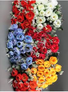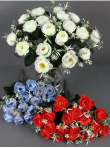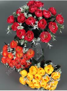 Букет камелий с пластм листьями 7гр 14 голов 33см (бел крас роз сир свек чай желт)