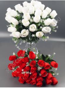 Букет бутонов роз с белой добавкой 15гр 40см (бел крас син св-перс сир лайм роз-перс бордо)