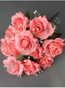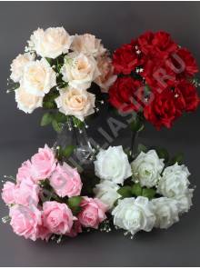 Букет роз с пенопластом и мелкоцветом 9гр 50см (1.мол 2.п-роз 3.свек 4.роз 5.чай 6.крем)
