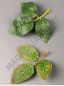 ***Лист розы с прожилками хлопок 3 листа 12.5см