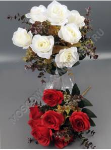 Букет роз с пенопластом и мелкоцветом 9гр 50см (1.мол 2.п-роз 3.свек 4.роз 5.чай 6.крем)