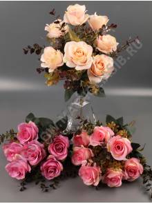 Букет бутонов роз полураскрытых 18гр 60см (бел крас сир оран роз-перс вишн мал персик)