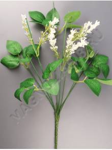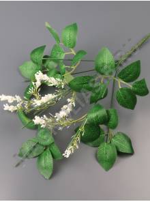 Нога для букета с пластмас листьями с напылением 7гр 40см (зел-бел зел-фиол)
