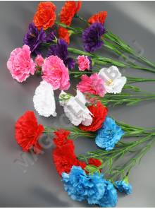 Ветка гвоздики крупной 62см (микс:бел крас оран б-сир б-роз роз жел фиол мал-роз)