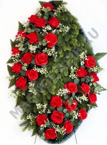 Венок с бархатными бутонами роз на возложение выс.125/140см шир.75см