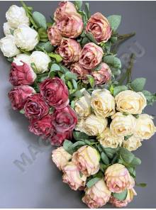 Букет бутонов роз полураскрытых 18гр 60см (бел крас сир оран роз-перс вишн мал персик)
