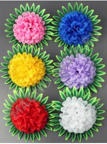 Хризантема 8см атлас на листе 4 сл 17см (бел крас роз желт сир)