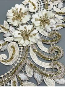 Декоративный элемент с золотой нитью "Завиток с цветами" 37*17см.