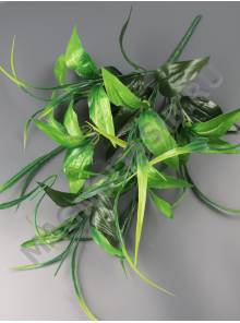 Нога для букета с пластмас листьями с напылением 7гр 40см (зел-бел зел-фиол)