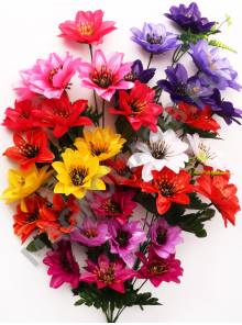 Букет пласт. хризантем 5цв. на подразетнике 20см микс (бел-лим жел оран фиол сир роз крас)