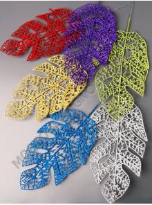 Лист папоротника узкого пластм. мерцающего 39/52см (зол сер черн)