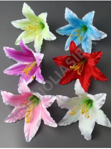 Лилия тигровая закрученная хлопок 15см без тычинки (бел крас син мал свек лайм)(тыч 2200 2211 2205)