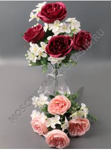 Букет роз с гортензией 9гр 43см (мол борд роз перс светло-сир пепел-сир)