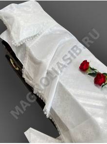 По ткани рисунки: цветы мелкие. По периметру покрывала обработка шитьем на 2/3, низ покрывала обработка - "оплавленный край". Расцветки: белый.