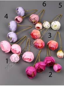 В одной упаковке может быть две модели: бутон + камелия, две камелии. Расцветки: 1.Розовый, 2.Темно-сиреневый, 3.Персиковый, 4.Серо-голубой, 6.Лиловый