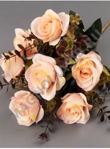 Букет роз с пенопластом и мелкоцветом 9гр 50см (1.мол 2.п-роз 3.свек 4.роз 5.чай 6.крем)